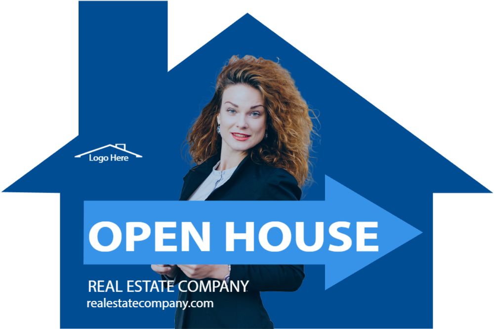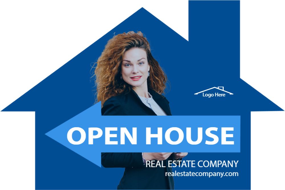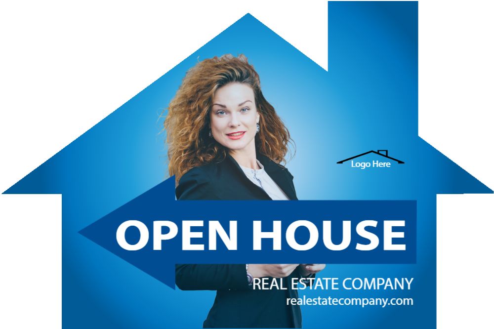 Cool Blue 12x18 House-Shaped Directionals with photo