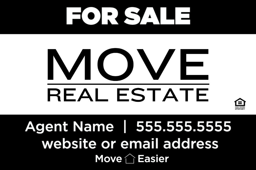 BackKeep your MOVE listings clean, professional, and consistent with this 4+4+4 bundle. Choose from 18×24 or 20×30 sizes. Each bundle includes four listing panels, four custom riders, and four stock riders — all designed to reflect MOVE’s bright, modern style. Printed on rugged ¼" PVC for long-lasting outdoor performance. Perfect for agents who want a turnkey branding solution.